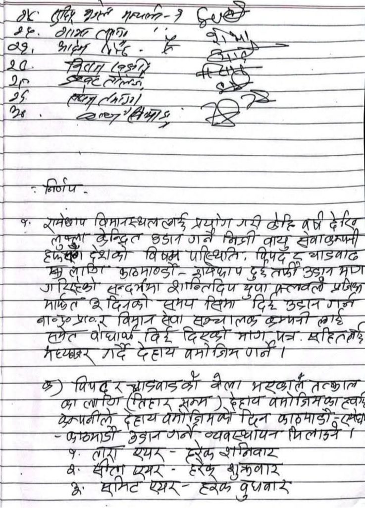आज बसेको बैठकले हरेक हप्ताको बुधवार समिट , शुक्रवार सिता र शनिवार तारा एयरले नियमित रुपमा रामेछापका नागरिकहरुलाई लक्षित गरी रामेछाप काठमाण्डौ सेवा दिने सहमति भएको शान्तिदिप युवा क्लवका अध्यक्ष सुरेश उदाशले जानकारी दिनुभयो ।
